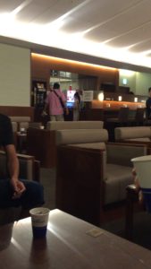 予定通り、17:20にデルタ航空へのチェックインを済ませ、保安検査までの時間つぶしを行う。飛行機の離陸が19:20なので、保安検査に入るのは18:20くらいを想定。それまでの間、『JCBラウンジ』を利用した。このラウンジを使用するのは初めてであった。フリードリンク&フリーお菓子、ソファーで薄暗く落ちついた時間を過ごせる。ガラス張りで飛行機の離発着を眺められるものではない。18:20、保安検査に向かう。出国審査も問題なく通過し、我々家族4人は無事飛行機に搭乗し、出発することができた